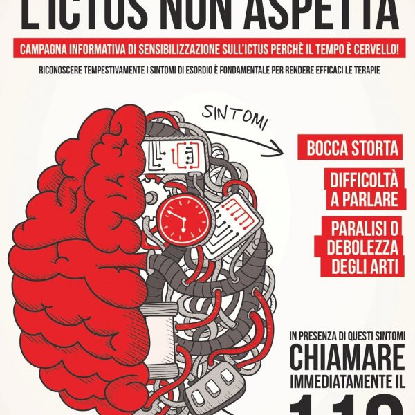 E' partita la campagna di informazione e sensibilizzazione della popolazione generale “Agisci in fretta, l'ictus non aspetta” ovvero Conoscere precocemente i sintomi di presentazione dell'Ictus per curarlo efficacemente.